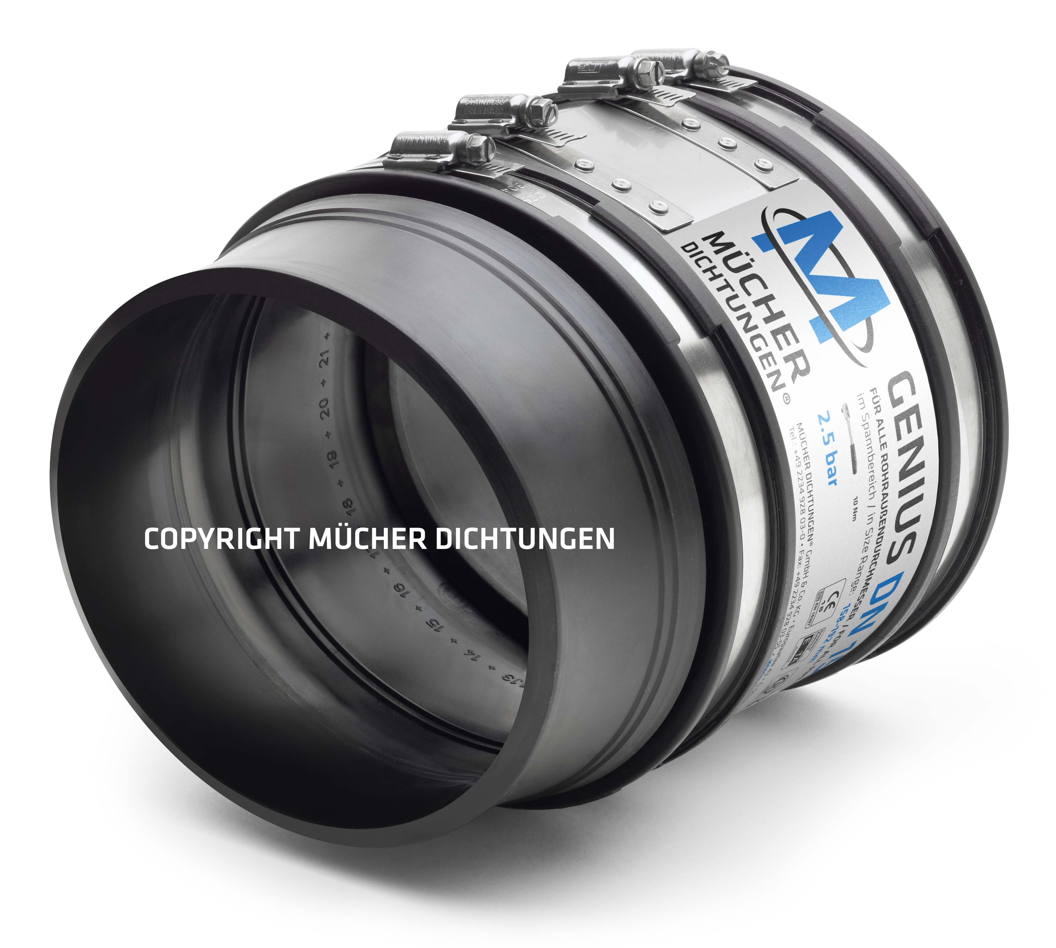 The Multi-Flexible-Coupling GENIUS comes with integrated removable bushes and is the right solution always to hand. What ever pipe material needs to be jointed within one dimension, the GENIUS will always be the right solution for the contractor.