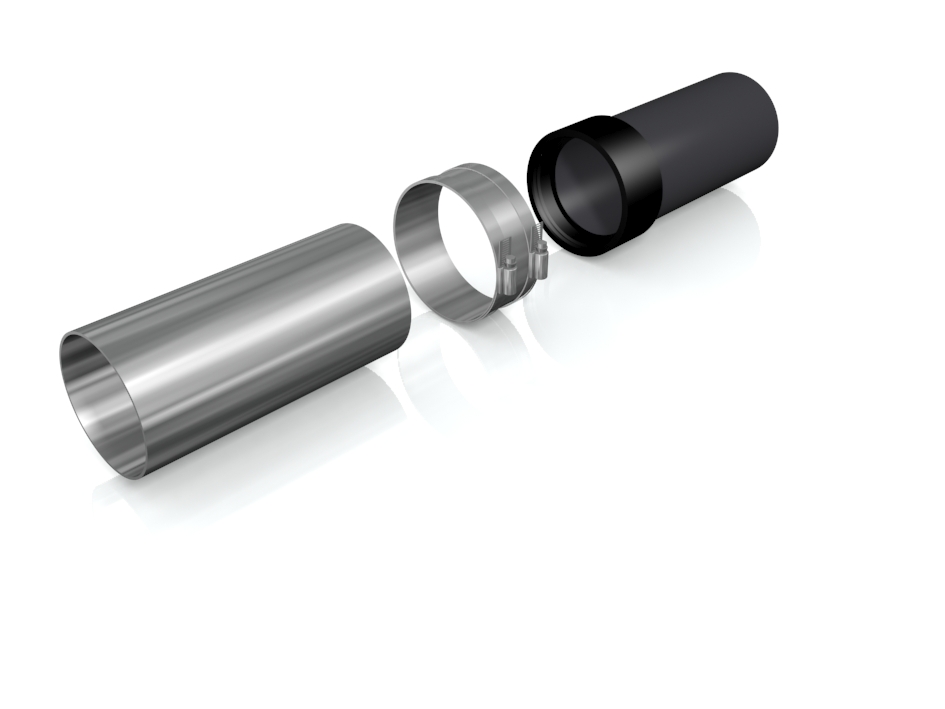 The FKM-Coupling RESISTOR joints plain ended industrial pipe systems with same diameters. It is suitable for above ground and non-pressure applications.